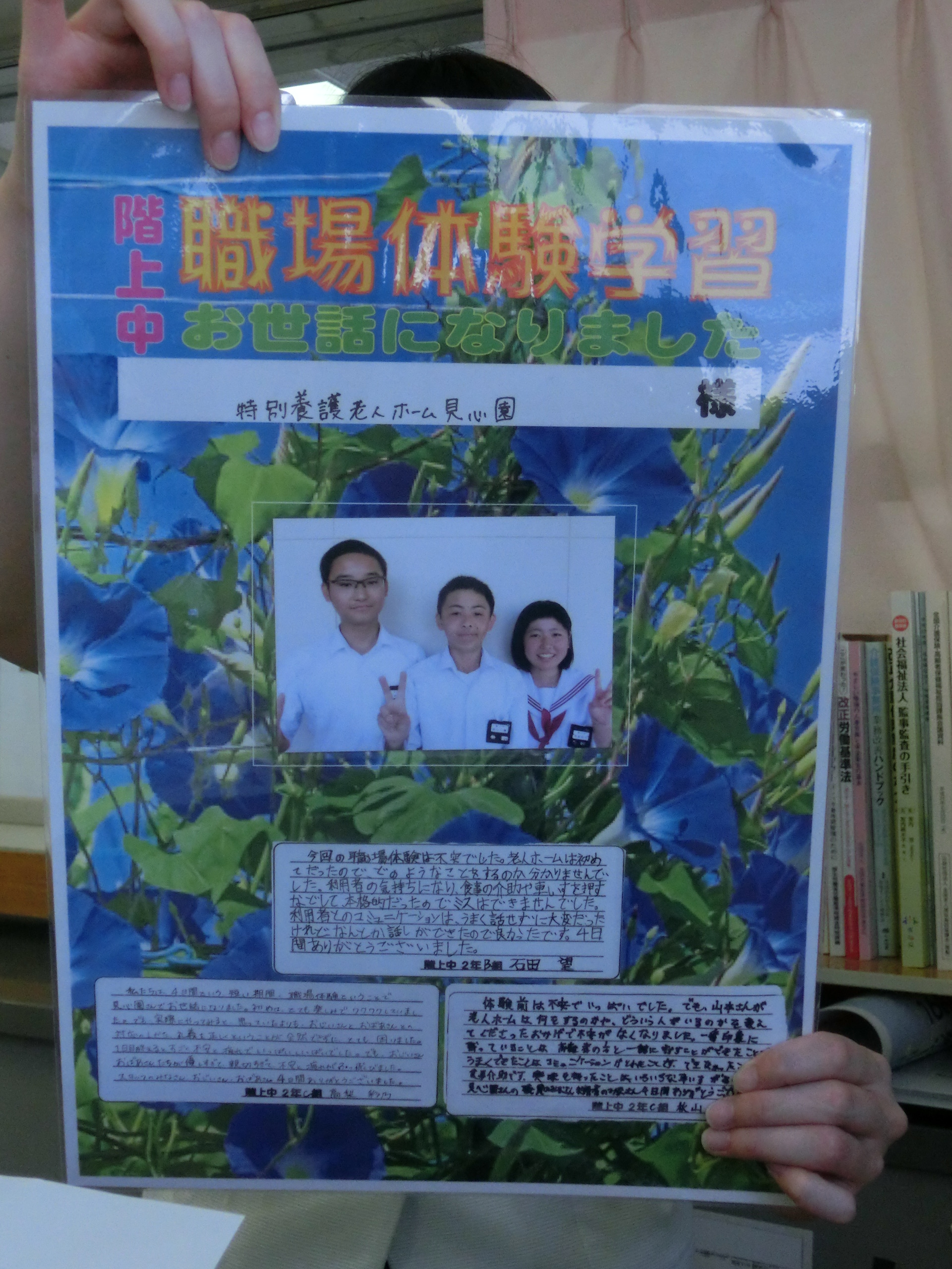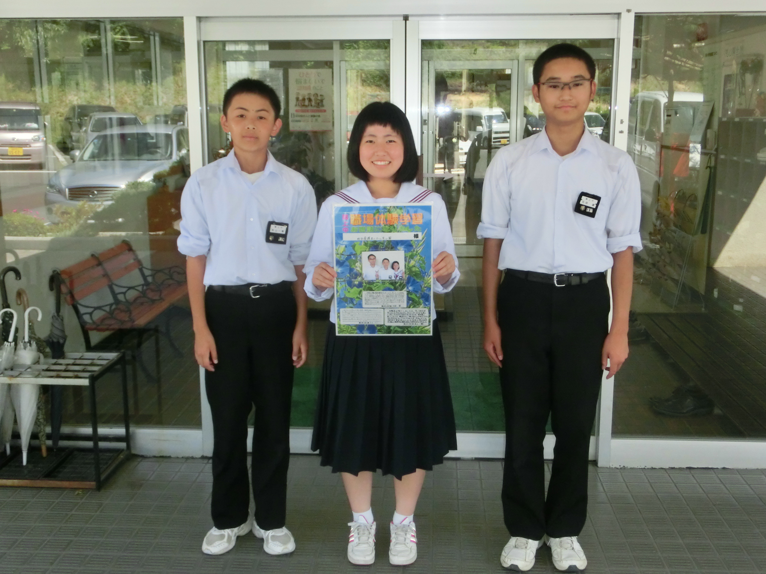 体験学習のお礼は正面玄関に貼りました