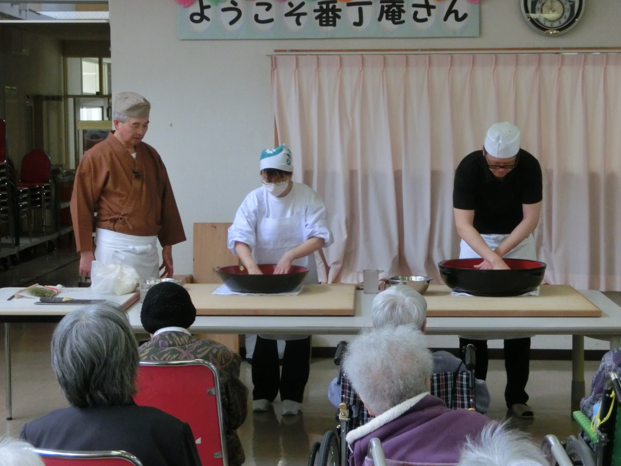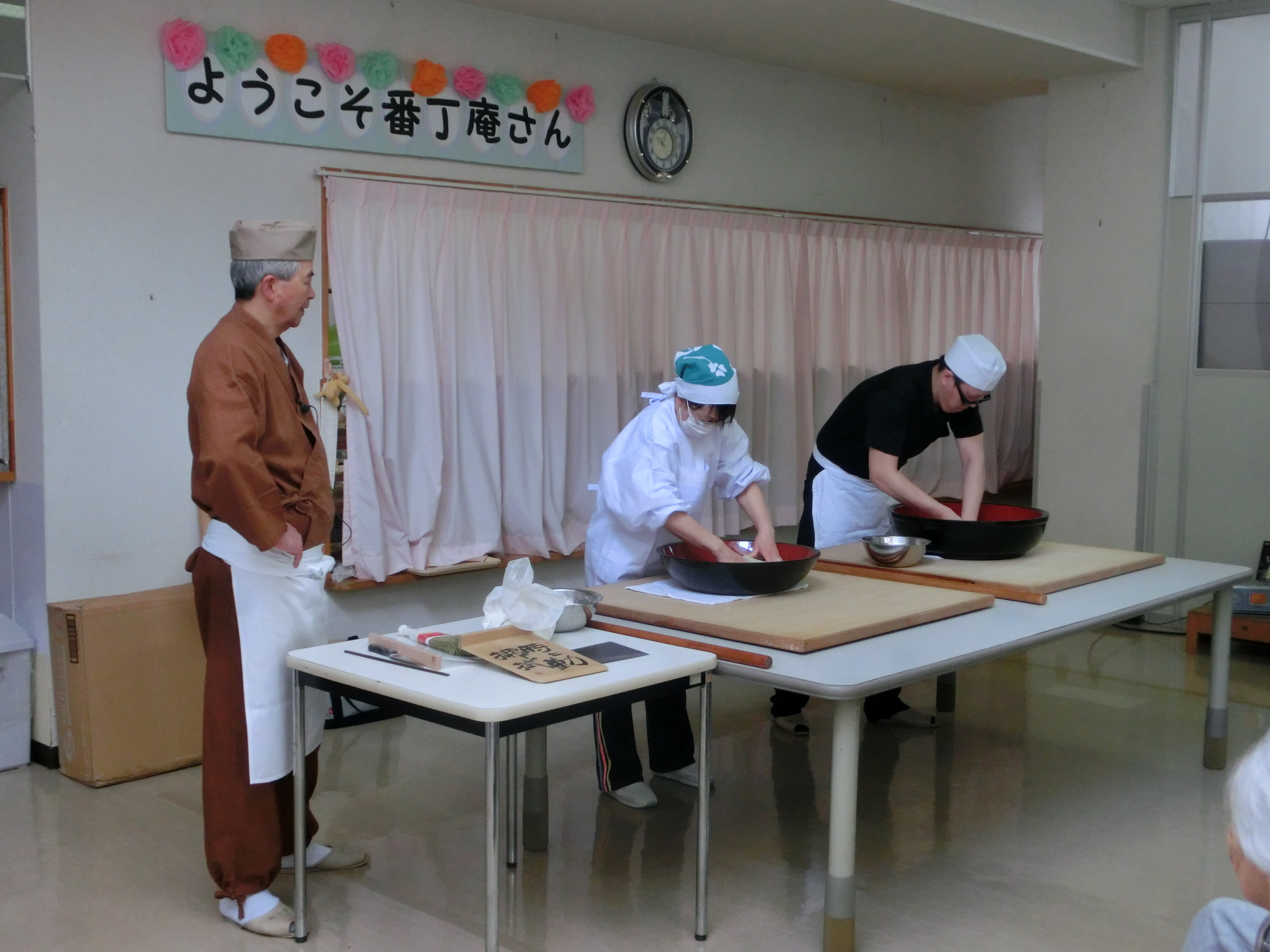 午前は「番丁庵さん」による、そば打ちの実演です