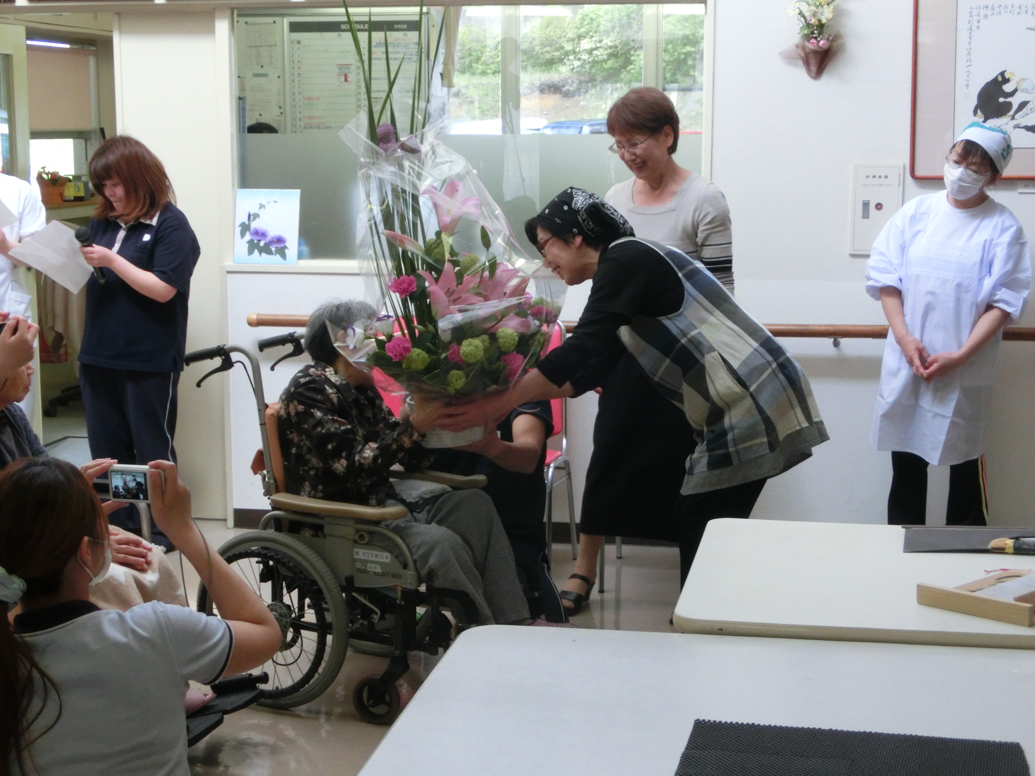 最後は、利用者さんよりお礼の言葉とお花の贈呈です