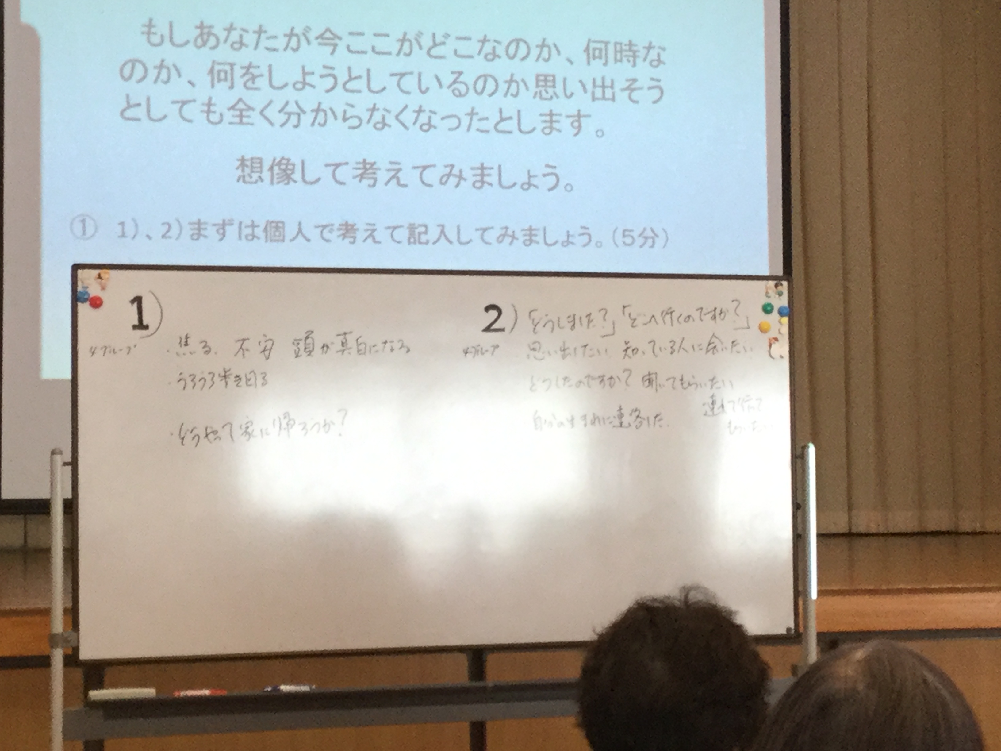 館長は、認知症に関する研修を多数受講しており、前半の座学はパワーポイントで分かりやすく説明していました。