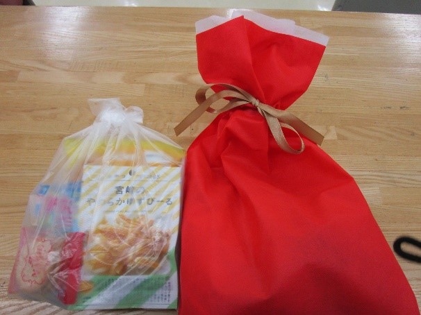 4袋のお土産に歓声が上がっていました