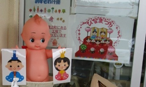 キューピーちゃんは「ひなまつり」バージョンでお出迎え